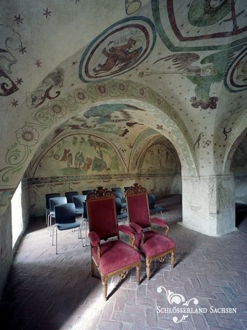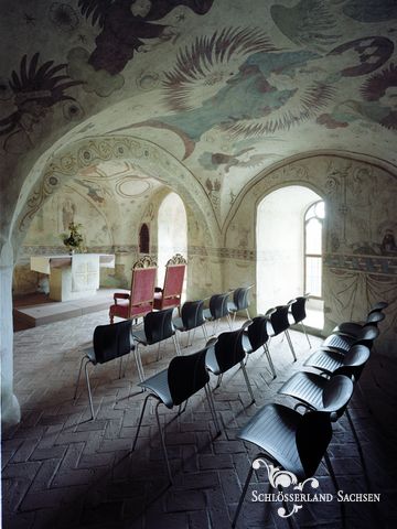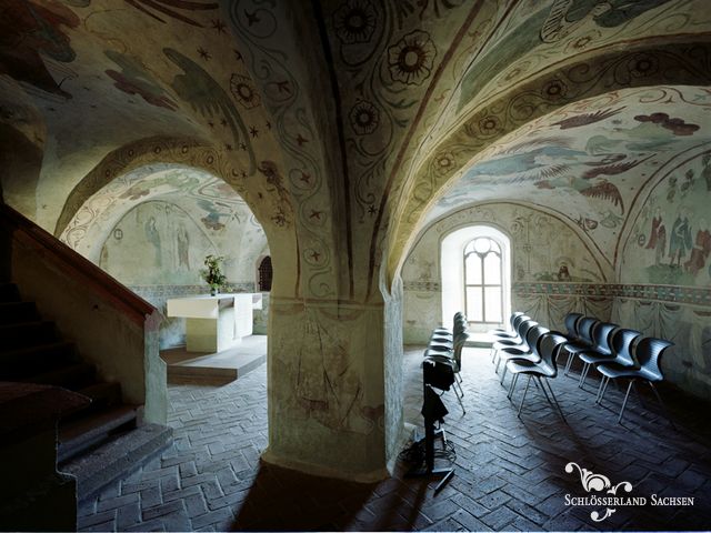 Direkt im Museum der Burg Kriebstein gelegen, hat dieser Raum mit den über 600 Jahre alten wertvollen Wandmalereien einen ganz besonderen Charme. Die Kapelle zählt zu den ältesten Räumen der Burg Kriebstein und ist durch die umfassende Ausmalung eine absolute Besonderheit im mitteldeutschen Kunstraum.