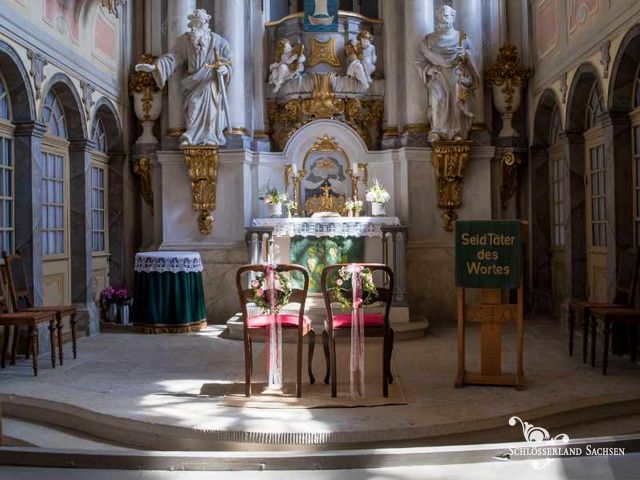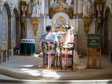 Mit der Evangelisch-lutherischen Schlosskapelle, gebaut vom George-Bähr-Schüler Johann Georg Schmidt, bietet das Schloss für diesen Anlass ein wundervolles barockes Ambiente.