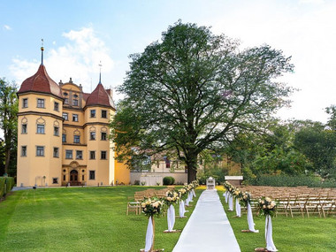 Eingebettet in eine malerische 30.000 m² große Parkanlage bietet das Schlosshotel Althörnitz die perfekte Kulisse für Ihre Trauung unter freiem Himmel. Lassen Sie sich vor der imposanten Schlossfassade das Jawort geben und genießen Sie eine Zeremonie, die ganz nach Ihren individuellen Wünschen gestaltet wird. Diese Art der Trauung ist das perfekte Pendant zur klassischen kirchlichen Zeremonie und verleiht Ihrem großen Tag eine persönliche und romantische Note. Gerne unterstützen wir Sie bei der Planung und vermitteln auf Wunsch einen Freien Redner, der Ihre Liebe in Worte fasst. Fühlen Sie sich wie Prinz und Prinzessin in unserem idyllischen Schlosspark und erleben Sie eine märchenhafte Hochzeit inmitten der Natur.