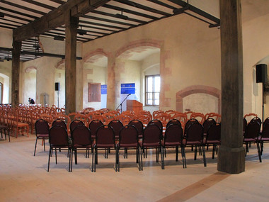Der herrschaftliche Tafelsaal eignet sich beispielsweise für hochwertige Veranstaltungen, Theateraufführungen oder einzigartige Firmen-Events.