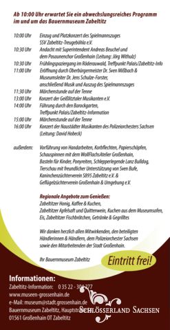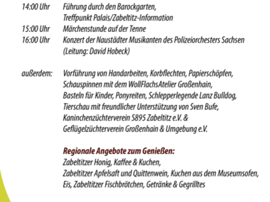 Ab 10:00 Uhr erwartet Sie ein abwechslungsreiches Programm in und um das Bauernmuseum Zabeltitz.