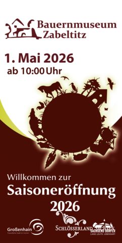Am 1. Mai findet die traditionelle Saisoneröffnung des Bauernmuseums in Zabeltitz statt. Regionale Händler und Aussteller bieten ihre Waren an.