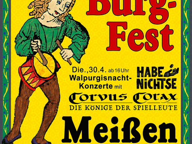 Diesmal gibt es mehr Musik! »1.000 Jahre Tanzmusik« - so lautet die neue Produktion der Spielleute »Corvus Corax«, die gleich für zwei Tage in Meißen aufspielen. Zur Walpurgisnacht (am 30. April) spielen zunächst »Die Habenichte« besten Mittelalter-RocknRoll mit 5*Spaßfaktor und im Anschluss »Corvus Corax - Die Könige der Spielleute« ihr neues Programm. Orlando von Godenhaven, Gaukler und Zauberer und Feuerreiner kümmern sich um die weitere Unterhaltung der zahlreichen Besucher.