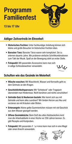 Endlich ist es soweit! Die neue Ausstellung "Kuhstall und Silberteller" im Barockschloss Rammenau öffnet für Gäste. Entdeckt unseren neuen Rundgang durch die ganze Schlossanlage mit tollen Stationen zum Ausprobieren und Mitmachen. Geht auf Zeitreise und begegnet früheren Schlossbewohnern. Am ersten Sommerferiensonntag feiern wir zur Eröffnung ein großes Familienfest. Wer im thematisch passenden Kostüm kommt, bekommt ab 13 Uhr freien Eintritt. Mit Waffeln, Eis, Suppe, Limo & Zwiebelkuchen sind alle gut verpflegt.