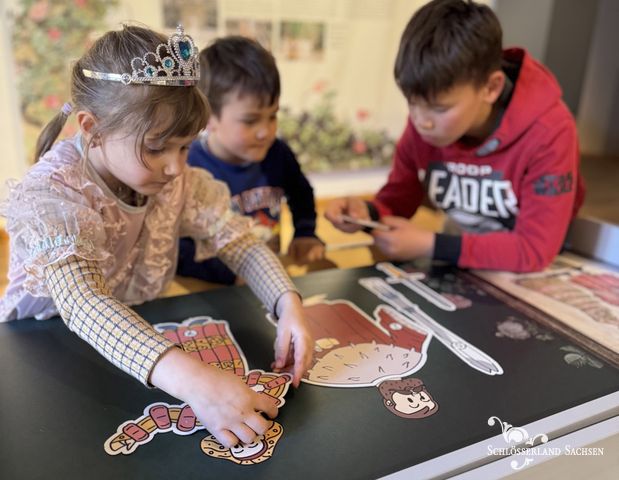 In 500 Jahren Schlossgeschichte ist viel passiert. Wir reisen gemeinsam durch die Zeit und gucken uns die einzelnen Stationen unserer Sonderausstellung „Fairytales – Geschichten aus dem Märchenschloss“ genauer an und finden heraus, was die Bären und Dornröschen gemeinsam haben. An jeder Station gibt es kleine Aufgaben für Klein und Groß und zum Schluss darf natürlich ein Foto in Verkleidung auf dem Dornröschen-Sofa nicht fehlen.