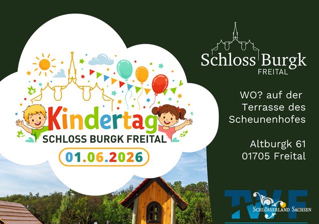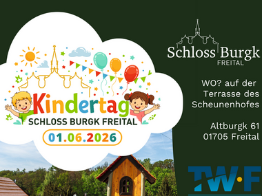 Ein besonderes Highlight erwartet dieses Jahr wieder alle Kinder und deren Familien: Am 1. Juni 2026 findet von 15:00 bis 18:00 Uhr das Kindertagsfest mit abwechslungsreichem Familienprogramm auf dem Scheunenhof in Schloss Burgk statt. Die Musikschule Freital feiert im Rahmen der Veranstaltung ihr 70-jähriges Bestehen. Zudem wirken der Kindergarten und örtliche Vereine mit. Für die Kinder gibt es Auftritte der beliebten Maskottchen HAINS-Pinguin und Biene Carli, Kinderschminken, Zuckerwatte und viele weitere Überraschungen.
