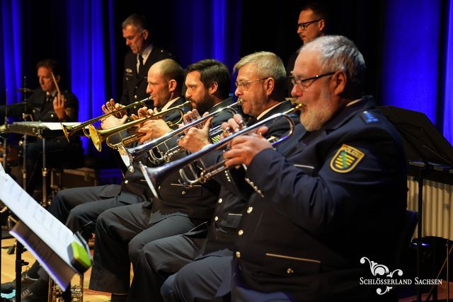 Herzlich willkommen in den 20er Jahren! Die acht Musiker des Polizeiorchesters Sachsen entführen ihr Publikum in die Zeit der Jazz-Melodien und Swing-Rhythmen. Die Instrumente Klarinette, Saxophon, Trompete, Posaune, Tuba, Gitarre, Piano und Schlagzeug führen klangvoll durch die Zeit des Dixieland. Darüber hinaus erklingen auch Melodien unvergessener Schlager. Das Ensemble ist musikalisch in verschiedenen Jahrzehnten flexibel unterwegs und verspricht immer Unterhaltung, Geselligkeit und Tanz. © Polizei Sachsen