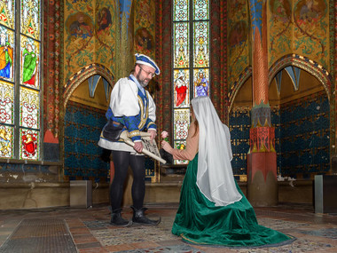 Baumeister Arnold von Westfalen zeigt Herzogin Sidonia die Baupläne des neuen (Fürsten)-Hofes zu Meißen und versucht ihr selbigen zu machen. Eine romantische Führung durch die Albrechtsburg Meissen mit anschließendem Valentinstagsmenü.