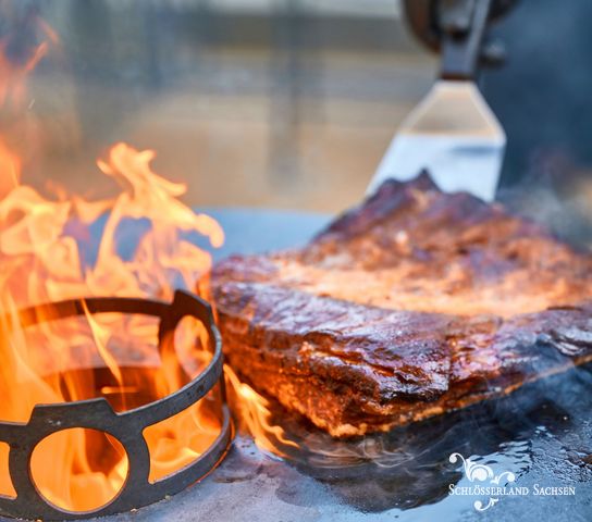 Lassen Sie sich bei einem gemütlichen Abend in unserem Gasthaus von den ausgesuchten Gaumenfreuden aus unserer Schlossküche und aus unserem Weinkeller verführen. Denn feine Spezialitäten vom Grill und sächsischer Wein, sind die Zutaten zum Glücklichsein.